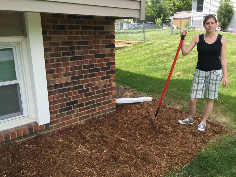 Don’t think mowing and roof action were all the things that happened – we also got the front of our house mulched and finally finished staining our deck as well as the neighbors old swinging bench that we inherited earlier in the week. Oh and we weeded the garden. Yay…